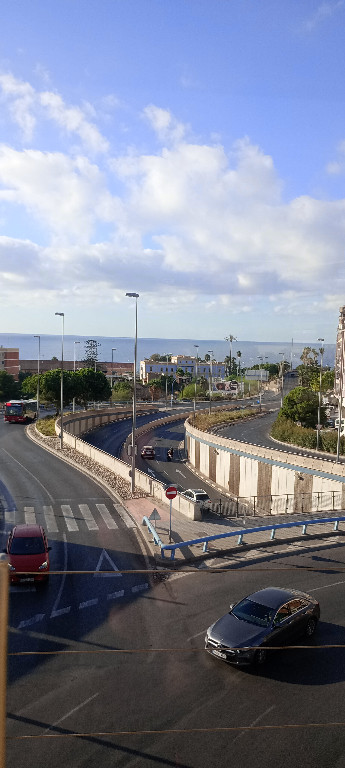 Niebo zachmurzyło się dość nietypowo, ale i tak widoki miałam spektakularne - po lewej ciemnawe, trochę wzburzone morze, po prawej piękna nowa dwupasmowa szosa, niemal pusta w sobotnie popołudnie, a dalej na prawo - domy zbudowane pod naturalną ścianą ze złocistego piaskowca.